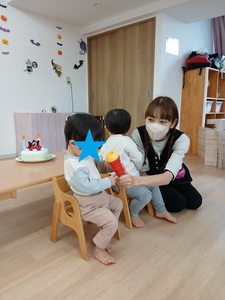 みんなでお誕生日のお歌を歌ってもらい、緊張しながらも嬉しそうな2人でした😊