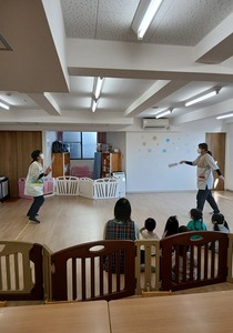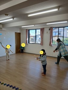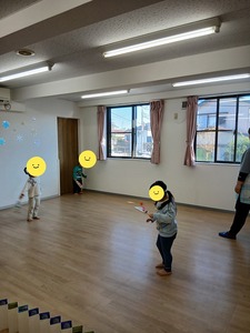 保育士と一緒に打つと「カンッ!」と当てることができました💮