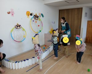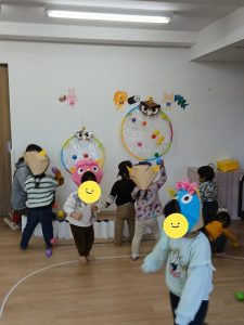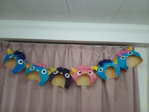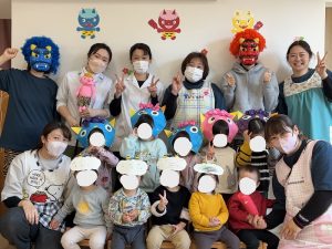 みんなが作った鬼の帽子やお面も準備万端🎵