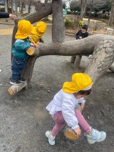 初めての公園には流木風の面白いアスレチックがありました👀✨