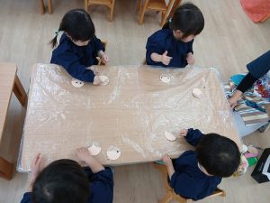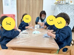 べたべたの感触に真剣な表情のりす組さんです👀✨